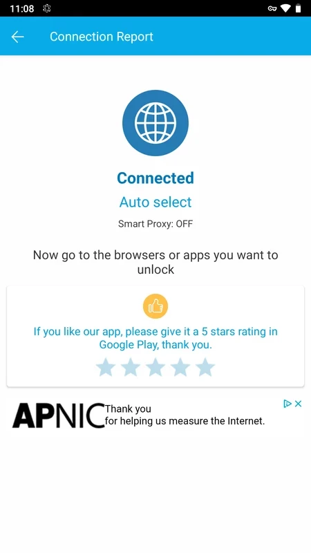 La aplicación ofrece un proceso rápido y sencillo para conectarse a tu servidor favorito. No requiere registro ni solicita información personal: simplemente instálala y ve a la pantalla principal. La interfaz no requiere configuraciones complejas y te permite acceder al contenido bloqueado con un solo clic.